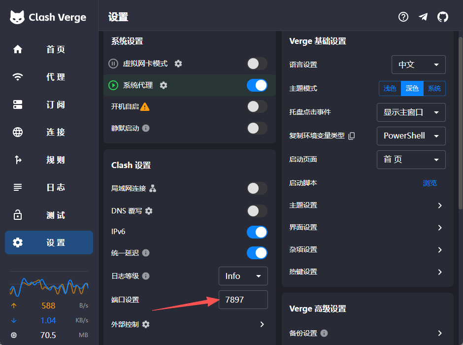 - 配置代理,先找到自己的代理端口,图为Clash Verge